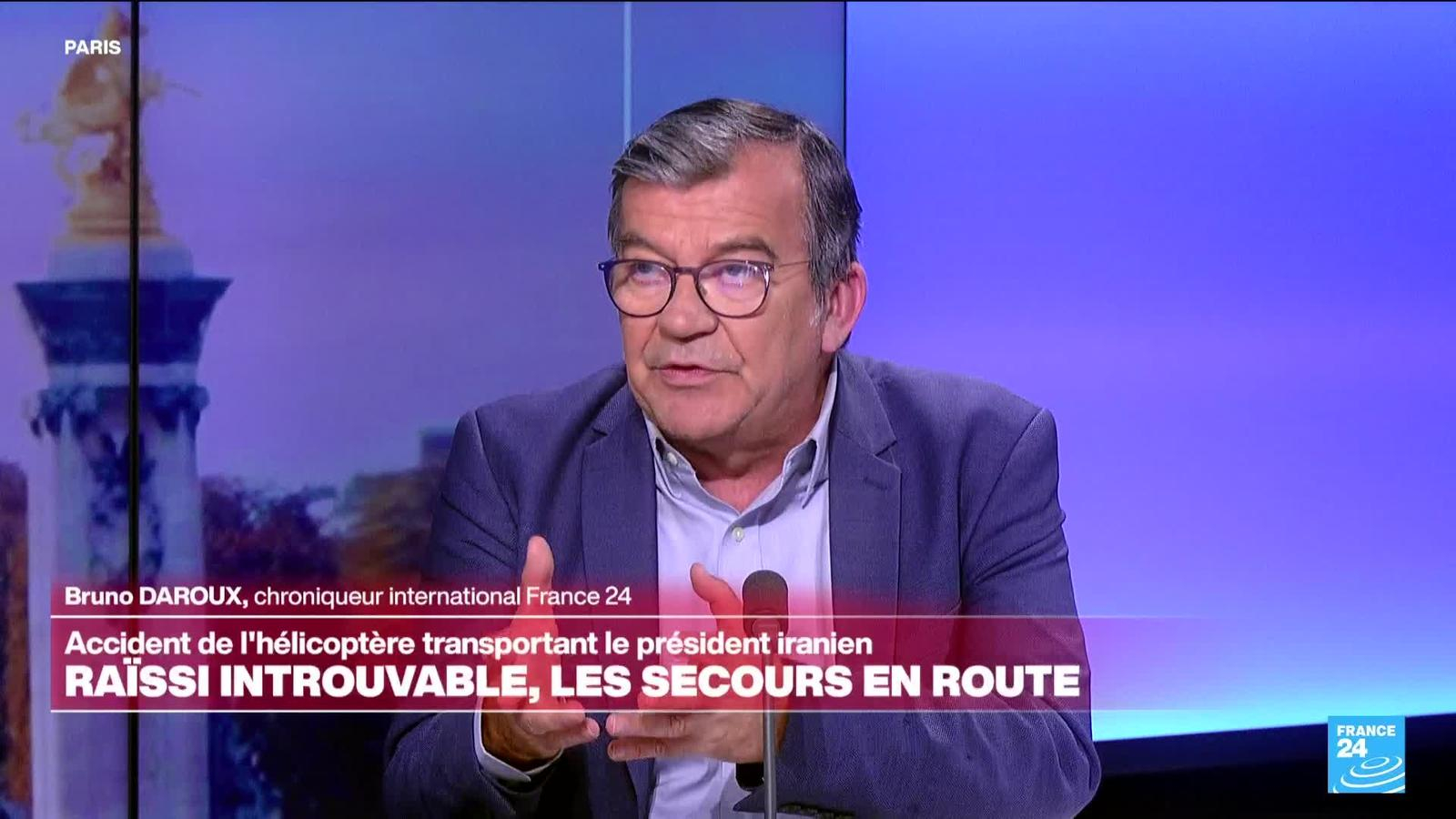 Un hélicoptère de la présidence iranienne a été impliqué dimanche dans un "accident" dans le nord-ouest du pays, ont annoncé des médias officiels. Le sort du président Ebrahim Raïssi, qui serait l'un des passagers de l'appareil, n'est pas encore connu. Les recherches en cours dimanche après-midi dans le nord-ouest de l'Iran sont rendues difficiles par les conditions météorologiques, dont le brouillard. Les dernières informations avec le chroniqueur international Bruno Daroux et le correspondant de France 24 à Téhéran, Siavosh Gazi.