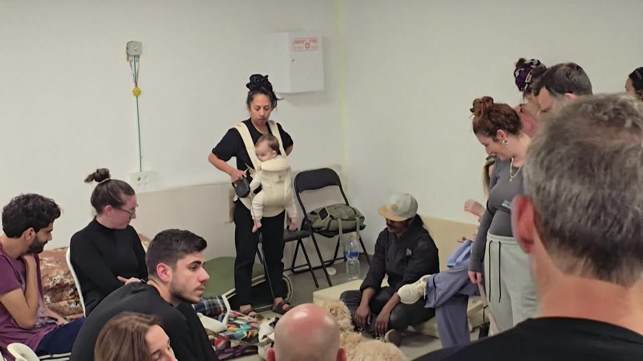 Des habitants se mettent à l'abri alors que les sirènes d'alerte retentissent lors d'une attaque de missiles iraniens sur le centre d'Israël.