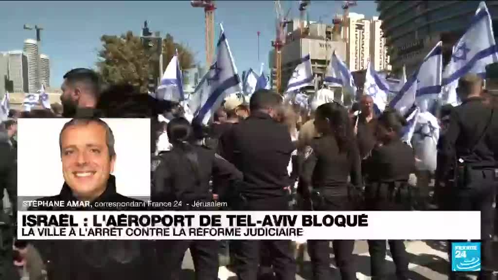 Israël : l'aéroport de Tel-Aviv bloqué, la ville à l'arrêt contre la réforme judiciaire information fournie par France 24 09/03/2023 à 14:38