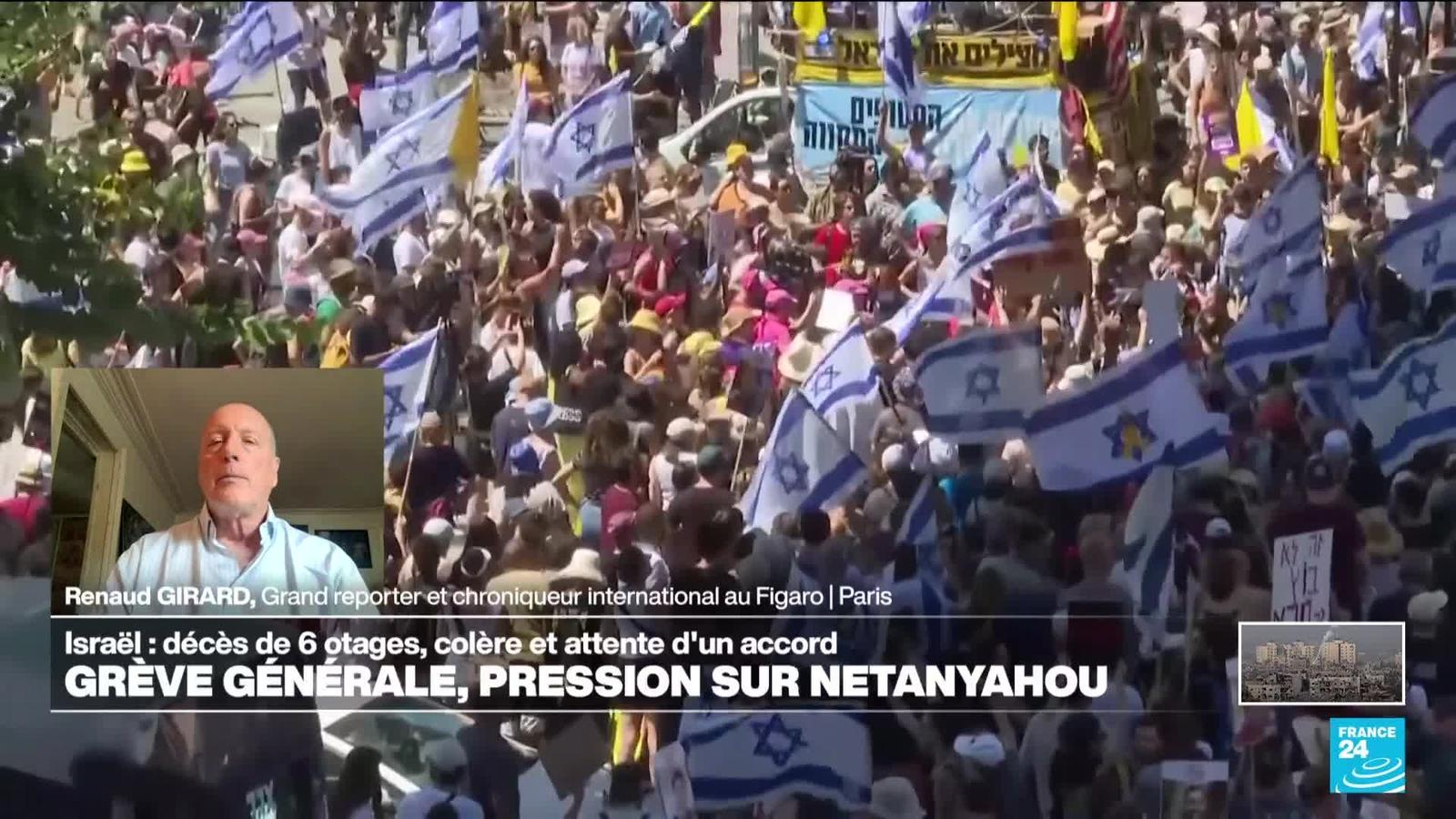 Des manifestations se poursuivaient lundi en Israël tandis que le plus grand syndicat israélien a lancé une grève générale afin de faire pression sur le gouvernement du Premier ministre Benjamin Netanyahu pour trouver un accord de libération des otages toujours détenus par le Hamas dans la bande de Gaza. Les explications de Renaud Girard, grand reporter et chroniqueur international au Figaro.