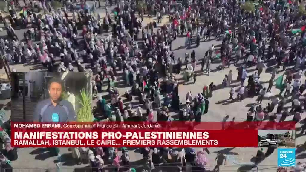 Des dizaines de milliers d'Egyptiens sont descendus dans la rue vendredi 20 octobre pour apporter leur soutien aux Palestiniens à Gaza, dont quelques milliers sur l'emblématique place Tahrir du Caire. Une manifestation de soutien aux Palestiniens a également eu lieu à Amman en Jordanie. Les précisions de Mohamed Errami, correspondant de France 24 à Amman en Jordanie.