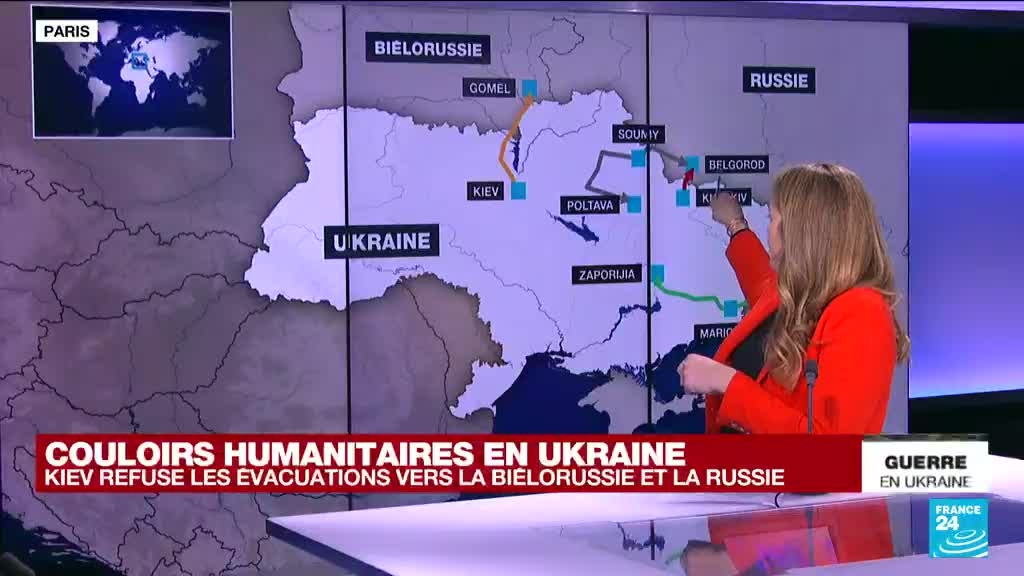 Kiev refuse les couloirs humanitaires vers le Bélarus et la Russie proposés par Moscou information fournie par France 24 07/03/2022 à 13:29