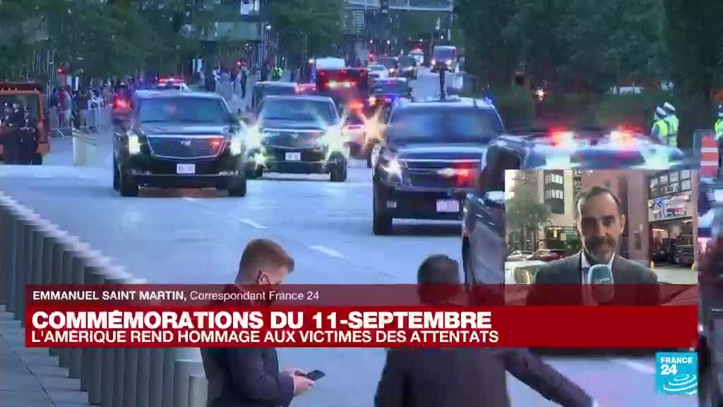 Les Etats-Unis commémorent samedi les attentats du 11 septembre 2001 avec un série d'évènements sur chacun des sites où des avions détournés se sont écrasés, il y a vingt ans, dans des attaques coordonnées qui ont fait près de 3.000 morts. Emmanuel Saint Martin envoyé spécial pour FRANCE 24 est en direct d'une caserne de pompiers à New York.