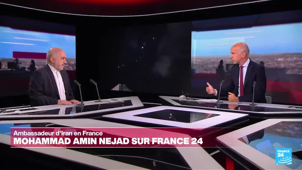L'ambassadeur d'Iran en France, Mohammad Amin Nejad, s'est exprimé sur le plateau de France 24. Dans la nuit du 1er au 2 octobre, son pays a lancé une pluie de missiles balistiques dans le ciel israélien. "Une grave erreur", a averti le Premier ministre israélien Benjamin Netanyahu, ajoutant que l'Iran "en paiera le prix", faisant craindre une riposte imminente. Toutefois, selon l’ambassadeur, les tirs de missiles iraniens ne constituent pas "une déclaration de guerre", mais relevaient du "droit" de l'Iran "à se défendre".