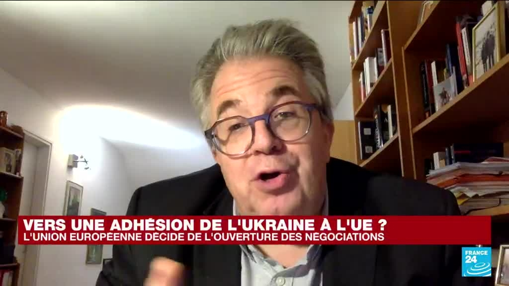 Les dirigeants de l'UE ont décidé jeudi à Bruxelles d'ouvrir des négociations d'adhésion avec l'Ukraine, en dépit de l'opposition affichée du Premier ministre hongrois Viktor Orban qui n'a finalement pas usé de son droit de veto. Pour le président du Conseil européen Charles Michel, cette décision d'ouvrir des négociations avec l'Ukraine, mais aussi avec la Moldavie, est "un signal clair d'espoir pour les citoyens de ces pays et pour notre continent". La décision a été prise sans aucune opposition. Le dirigeant hongrois "n'était pas dans la salle quand le texte a été adopté, c'était convenu avec lui", a expliqué à l'AFP un diplomate européen ayant requis l'anonymat. "C'est une solution pragmatique (...) Le signal politique est donné", a-t-il poursuivi. Pour les explications sur l'ouverture des négociations d'adhésion à l'UE avec l'Ukraine, Raphaël Kahane de FRANCE 24 reçoit Christian Lequesne, Professeur à Sciences Po, spécialiste des questions européennes et Chroniqueur régulier au quotidien Ouest France sur la politique européenne.