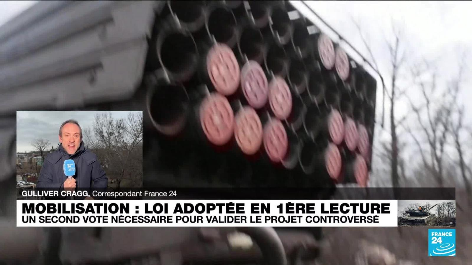 Le parlement ukrainien a voté mercredi en première lecture pour un projet de loi controversé sur la mobilisation militaire pour permettre à l'armée de regarnir ses rangs après deux ans de guerre avec la Russie, ont annoncé des députés. Pour être adopté, le texte doit cependant encore faire l'objet de débats parlementaires, de propositions d'amendements et d'un vote en deuxième lecture, une procédure qui peut s'étaler sur des semaines. Les précisions de Gulliver Cragg depuis Kiev pour France 24.