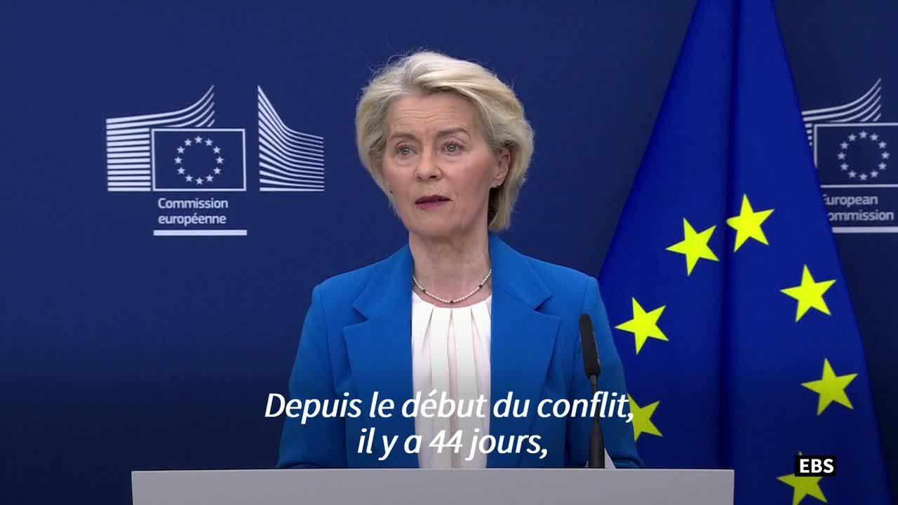 La fermeture du détroit d'Ormuz cause "d'énormes préjudices" (von der Leyen) information fournie par AFP Video 13/04/2026 à 15:53