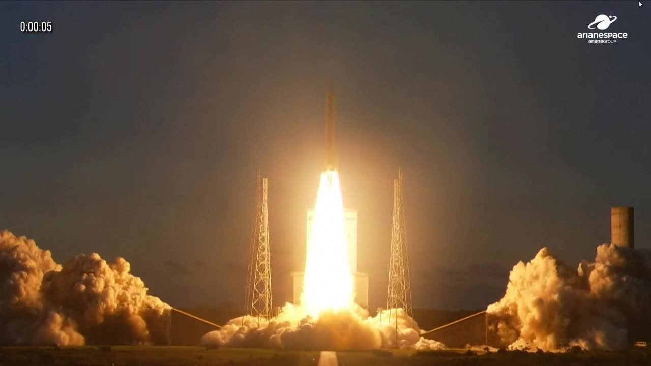 La fusée européenne Ariane 6 décolle de Kourou, en Guyane française, pour placer en orbite le satellite Sentinel-1D pour le programme d'observation de la Terre européen Copernicus.