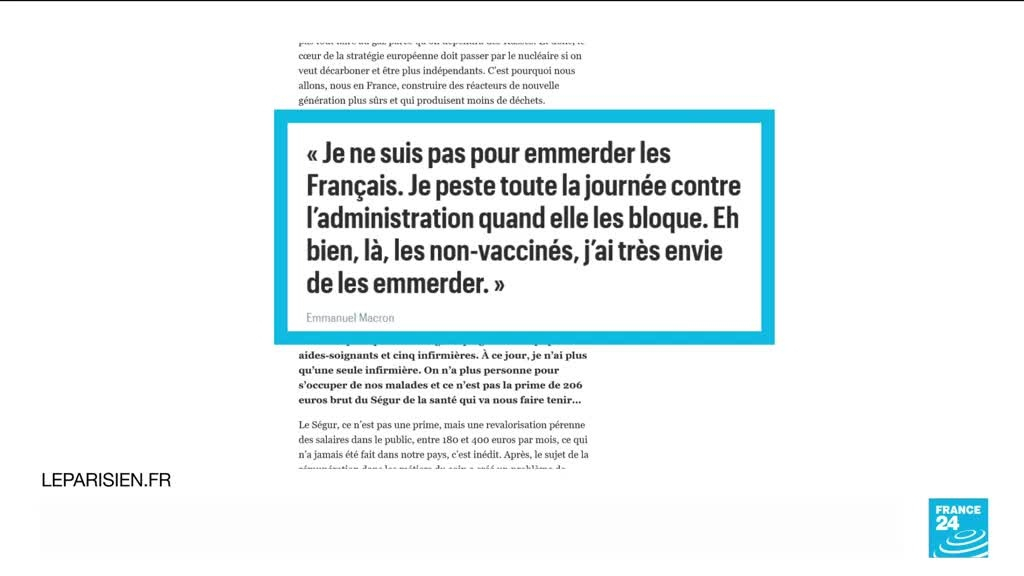 La polémique autour des propos d'E. Macron perturbe le débat sur le passe vaccinal information fournie par France 24 05/01/2022 à 11:21