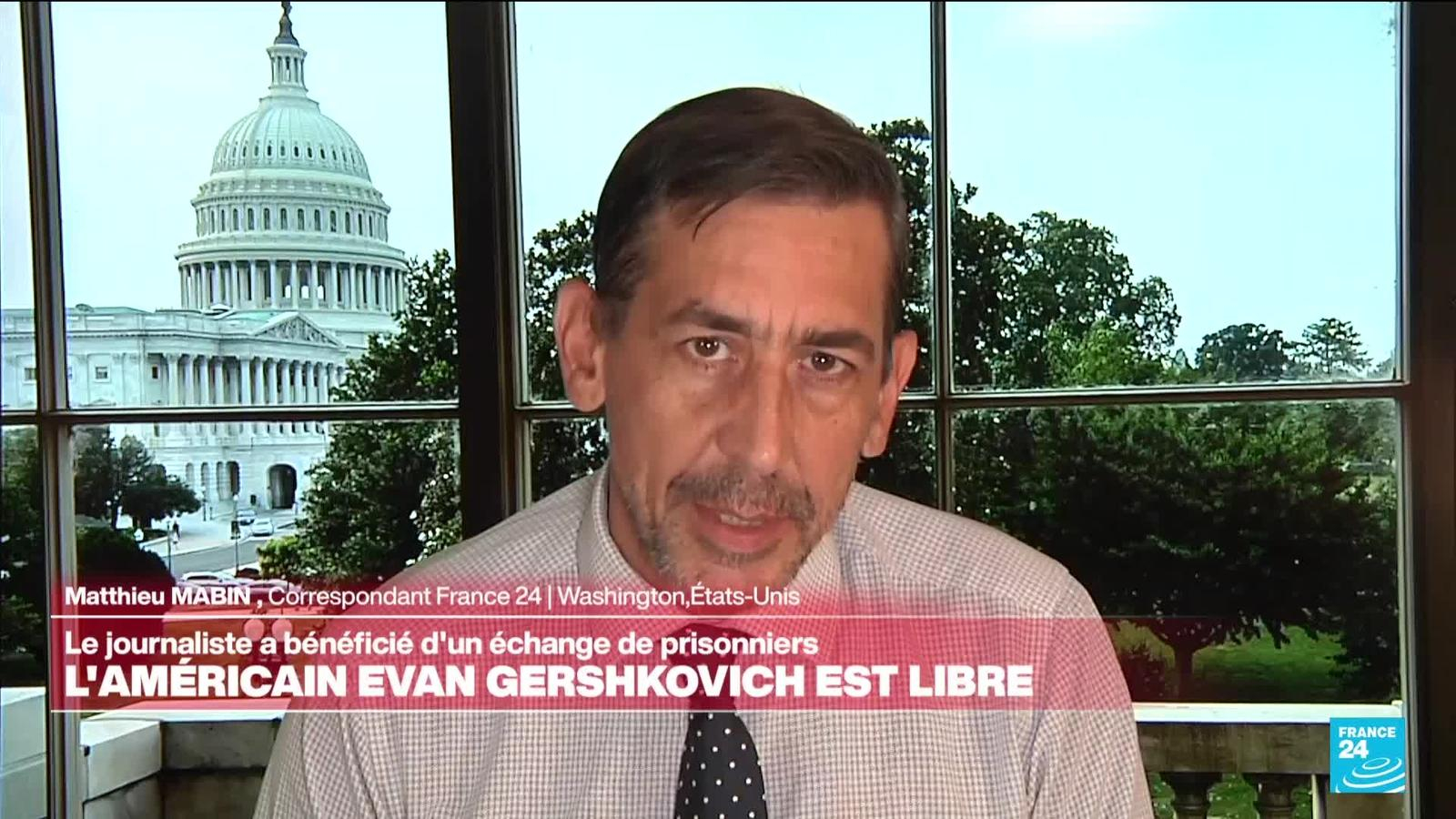 La Russie a libéré le journaliste américain Evan Gershkovich et l'ancien marine Paul Whelan, a déclaré jeudi la présidence turque, dans le cadre d'un échange de prisonniers plus large avec les Etats-Unis et d'autres pays. Les explications de Matthieu Mabin, correspondant France 24 à Washington.