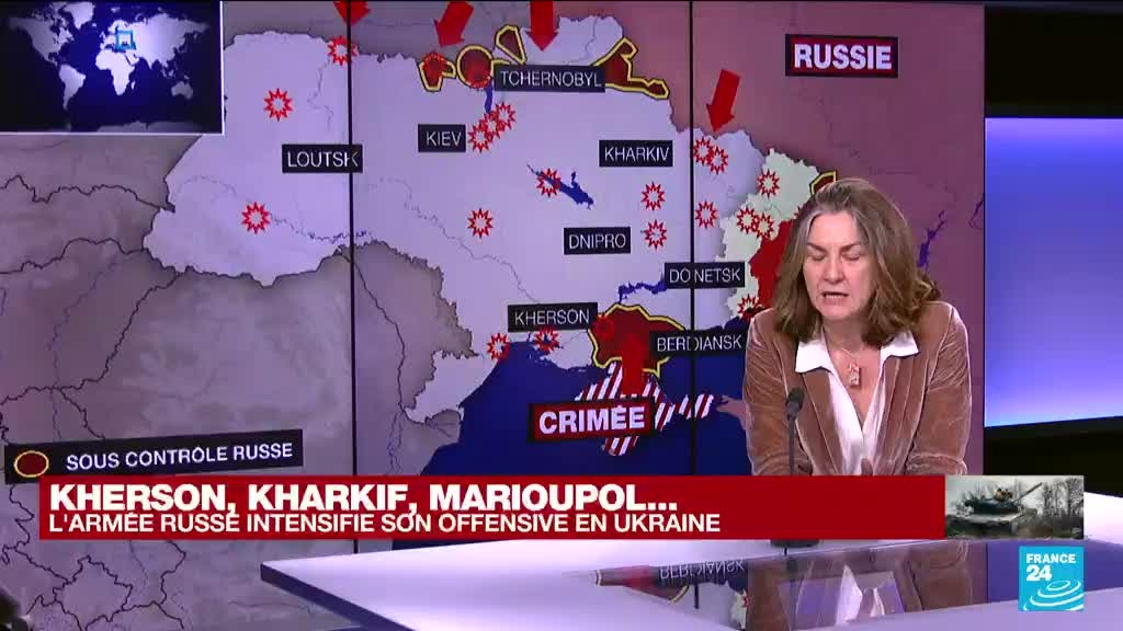 La Russie intensifie son offensive en Ukraine, Kharkiv sous les bombes, Marioupol menacée information fournie par France 24 01/03/2022 à 12:00