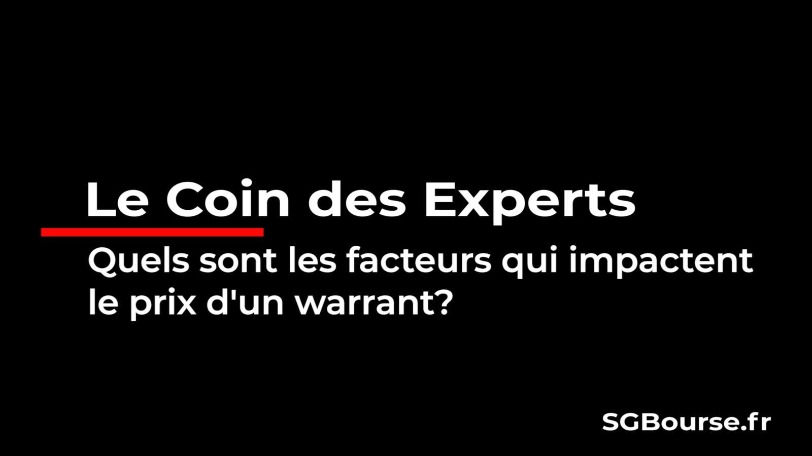 Envie d'en savoir plus sur les Produits de Bourse? Découvrez notre série de vidéos pédagogiques #LeCoindesExperts par Société Générale Produits de Bourse. Une vidéo pour maîtriser les points les plus techniques des Produits de Bourse. Cette semaine on se penche sur les facteurs qui impactent le prix d'un Warrant.