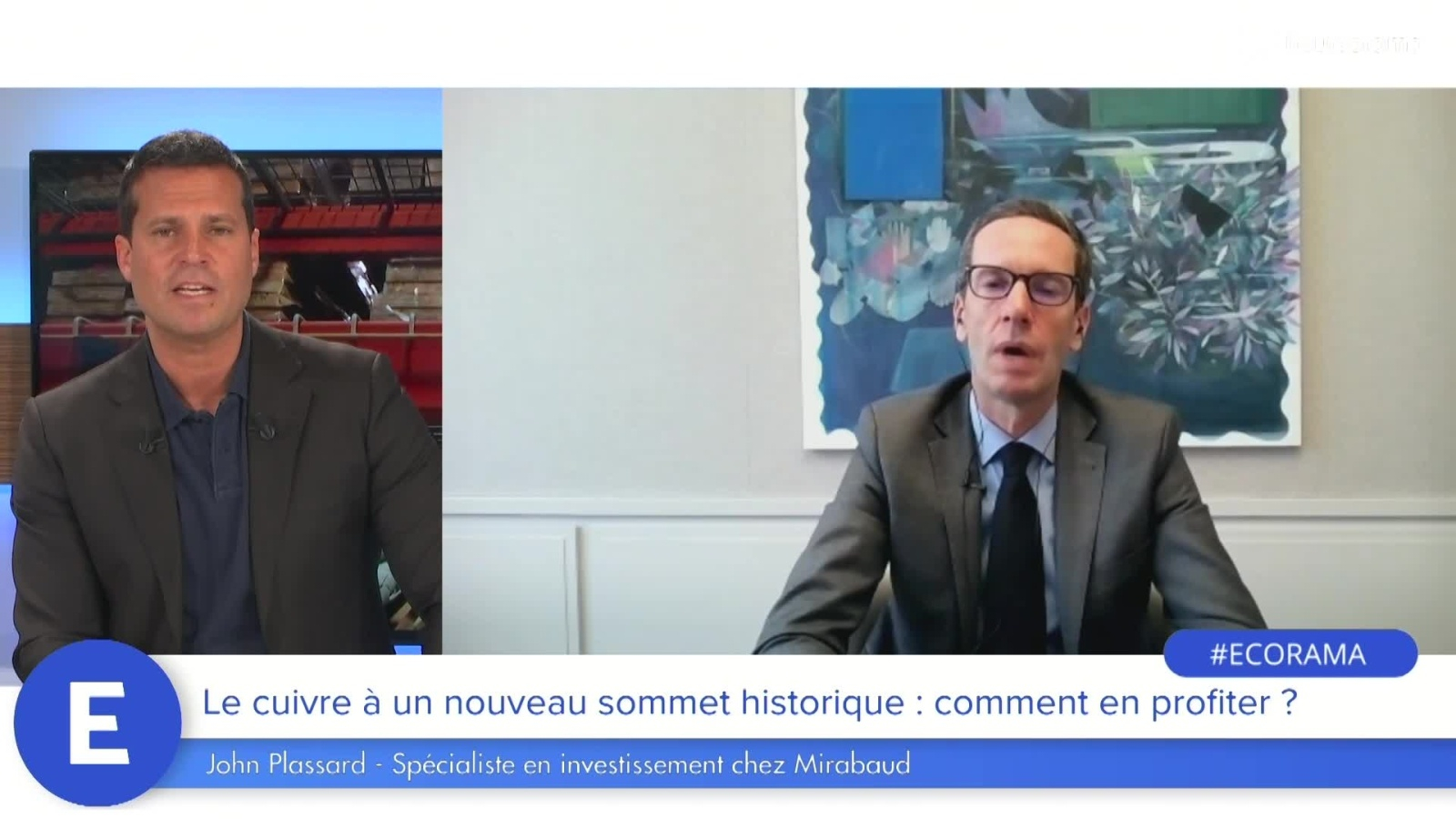 Le métal rouge vient de dépasser les 10 000 dollars la tonne. Du jamais vu depuis 10 ans. Quelles sont les raisons de cette hausse de 25% depuis le début de l'année ? Cette envolée peut-elle se poursuivre ? Le point de vue de John Plassard, spécialiste en investissement chez Mirabaud. Ecorama du 30 avril 2021, présenté par David Jacquot sur Boursorama.com