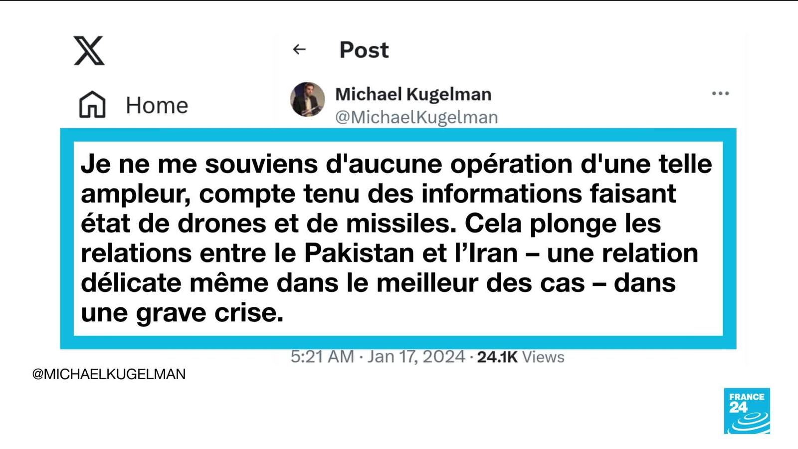 Le Pakistan accuse l'Iran d'avoir procédé à une frappe mortelle sur son territoire information fournie par France 24 17/01/2024 à 10:43