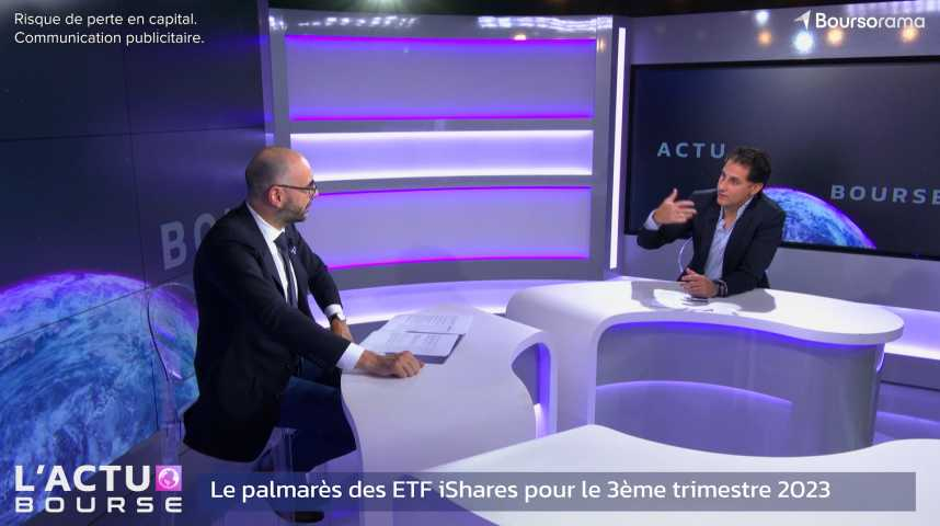 Dans ce numéro de l'actu Bourse, on fait le point sur les tops et les flops des ETF iShares sur le 3e trimestre 2023 avec Arnaud Gihan, directeur iShares France, chez BlackRock.