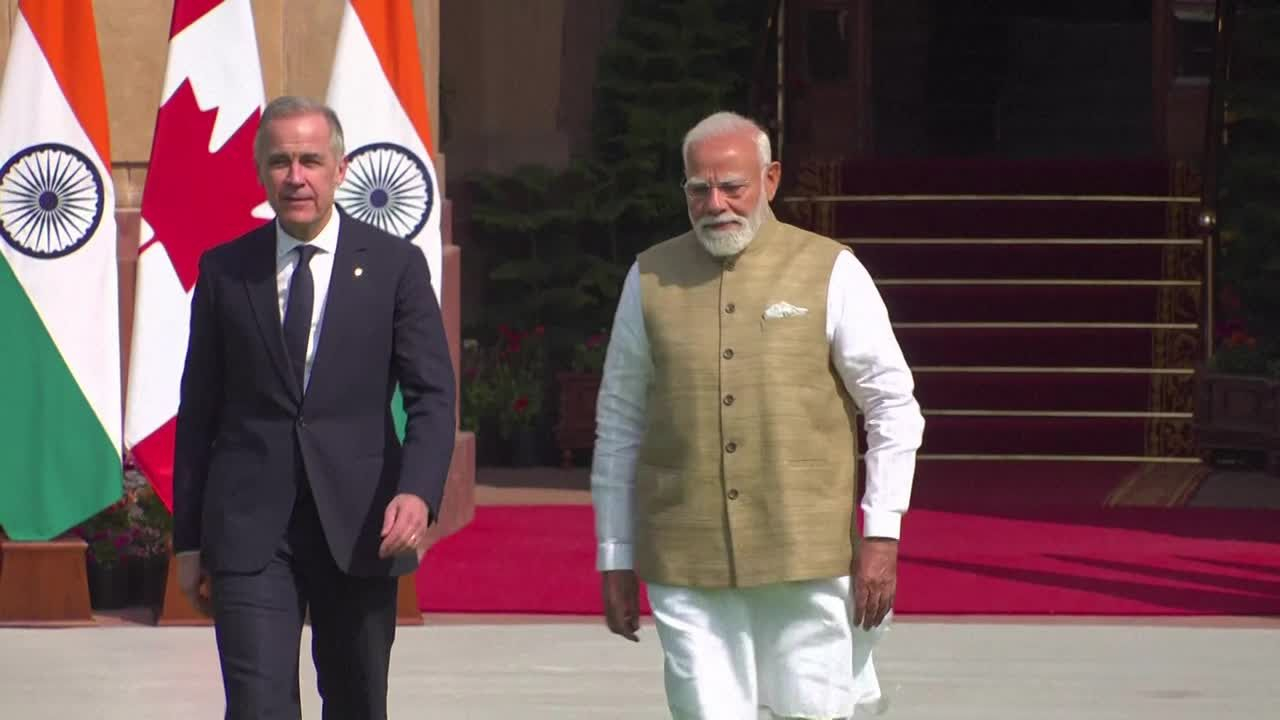 Le Premier ministre canadien Mark Carney rencontre son homologue indien Narendra Modi à New Delhi, avec qui il espère diversifier ses échanges commerciaux et réchauffer des relations mises à mal. IMAGES
