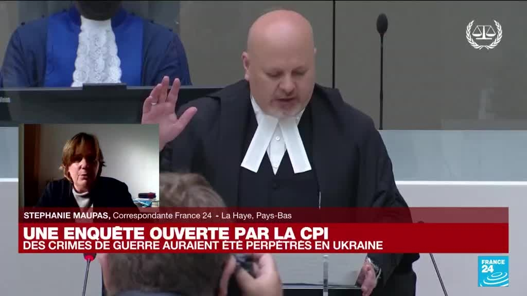 Le procureur de la Cour pénale internationale a annoncé mercredi soir "l'ouverture immédiate" d'une enquête sur la situation en Ukraine, où seraient perpétrés des crimes de guerre, après avoir reçu le feu vert de 39 Etats parties de la CPI. Les explications de Stéphanie Maupas, correspondante pour FRANCE 24 à La Haye.