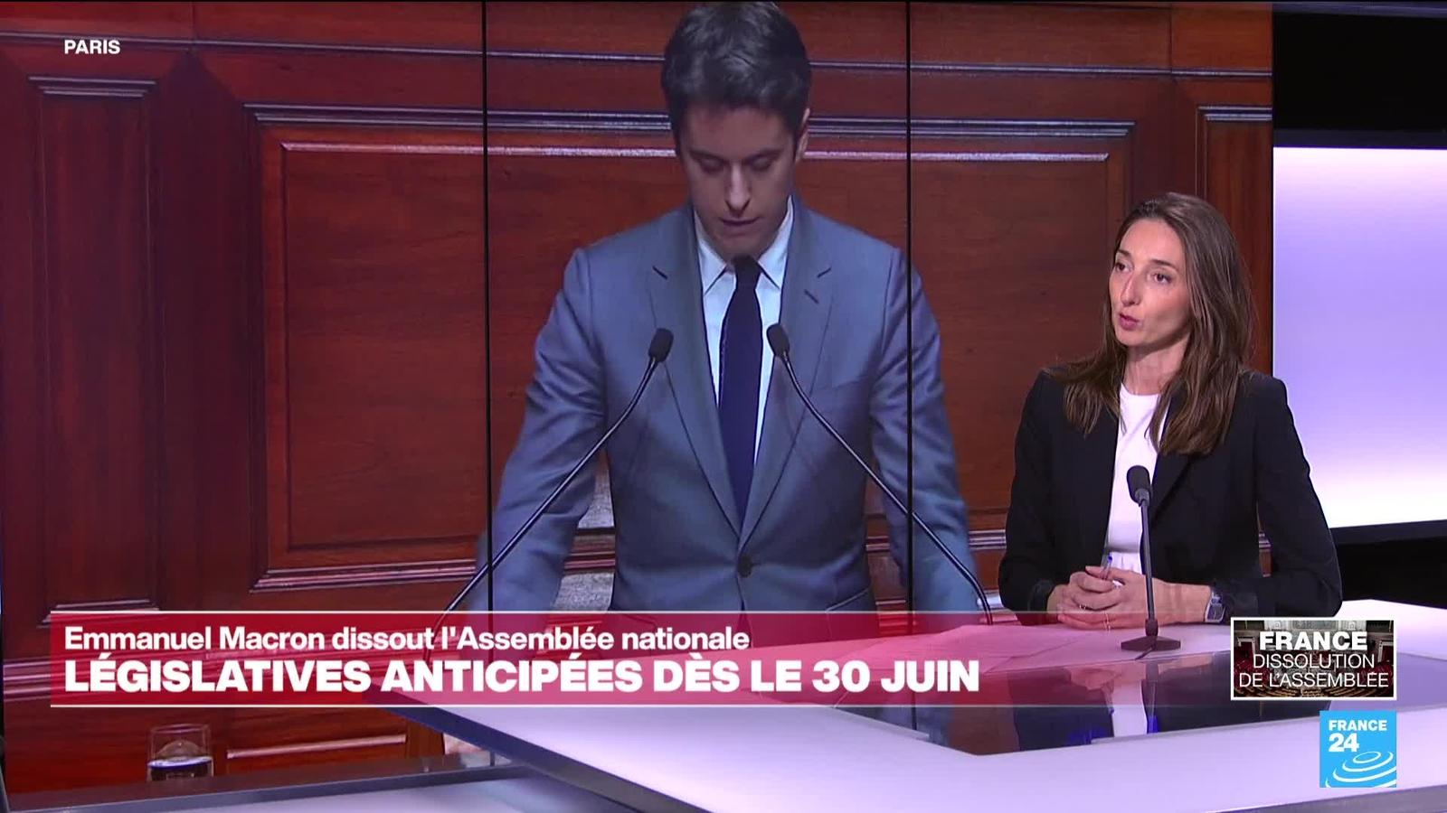 Le président Emmanuel Macron a réaffirmé lundi 10 juin, au lendemain de sa décision de dissoudre l'Assemblée nationale, qu'il avait "confiance en la capacité du peuple français à faire le choix le plus juste" lors des élections anticipées qui se tiendront dans trois semaines. A l'approche de ce nouveau scrutin, la gauche cherche à s'unir malgré ses très fortes divergences. L'analyse de Flore Simon, journaliste politique à France 24.