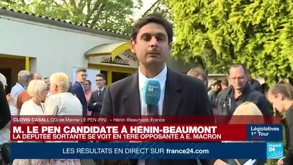Marine Le Pen et son parti, le Rassemblement National (RN), rêvent de remporter assez de sièges aux élections législatives françaises, pour avoir du poids à l'Assemblée Nationale. Clovis Casali est en direct depuis le QG de Marine Le Pen (RN) à Hénin-Beaumont.