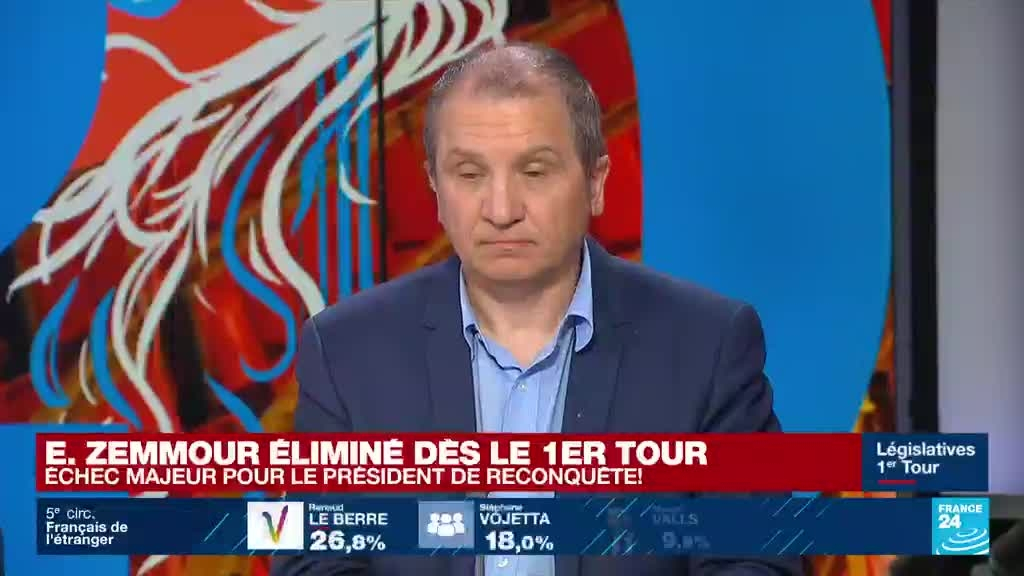 Législatives : échec majeur pour Eric Zemmour (Reconquête!), éliminé dès le 1er tour information fournie par France 24 12/06/2022 à 21:51