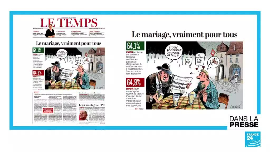A la Une de la presse, ce lundi 27 septembre, les réactions aux résultats des législatives en Allemagne, où les sociaux-démocrates devancent légèrement les conservateurs. Le «oui» des Suisses au mariage pour tous. Et l’exaspération croissante des Britanniques face à la pénurie de carburant.