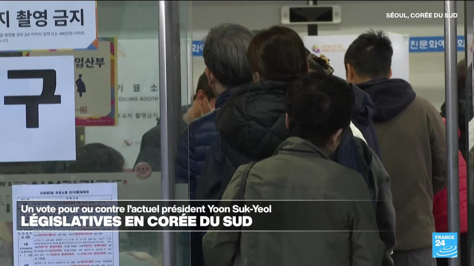 Le président de la Corée du Sud, Yoon Suk-Yeol, fait face mercredi à l'épreuve des urnes lors d'élections législatives considérées comme un référendum de mi-mandat pour son programme conservateur, à la suite d'une campagne qui a éludé de nombreux problèmes réels du pays. Les précisions de Chloé Borgnon, correspondante de France 24 à Séoul.