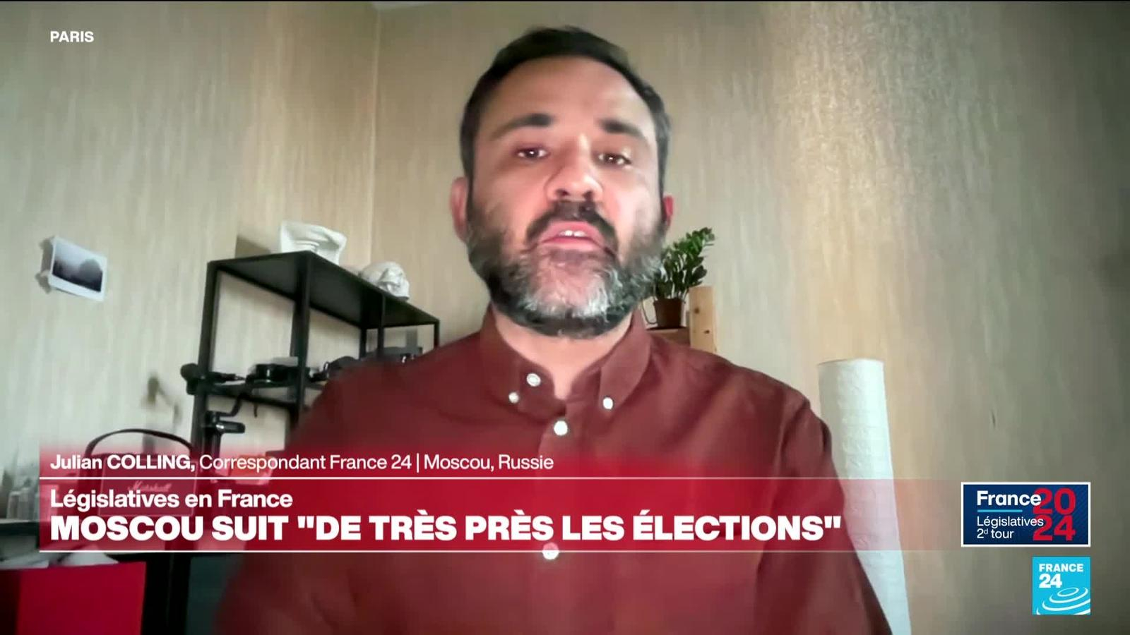 Le Rassemblement national est arrivé en tête (33,1 %), dimanche 30 juin, du premier tour des élections législatives devançant le Nouveau Front populaire (28 %) et le camp présidentiel (20 %) dans un scrutin à l’enjeu politique inédit dans l’histoire de la Ve République. Comment ces résultats sont perçus en Russie. Éléments de réponse avec Julian Colling, correspondant de France 24 à Moscou.
