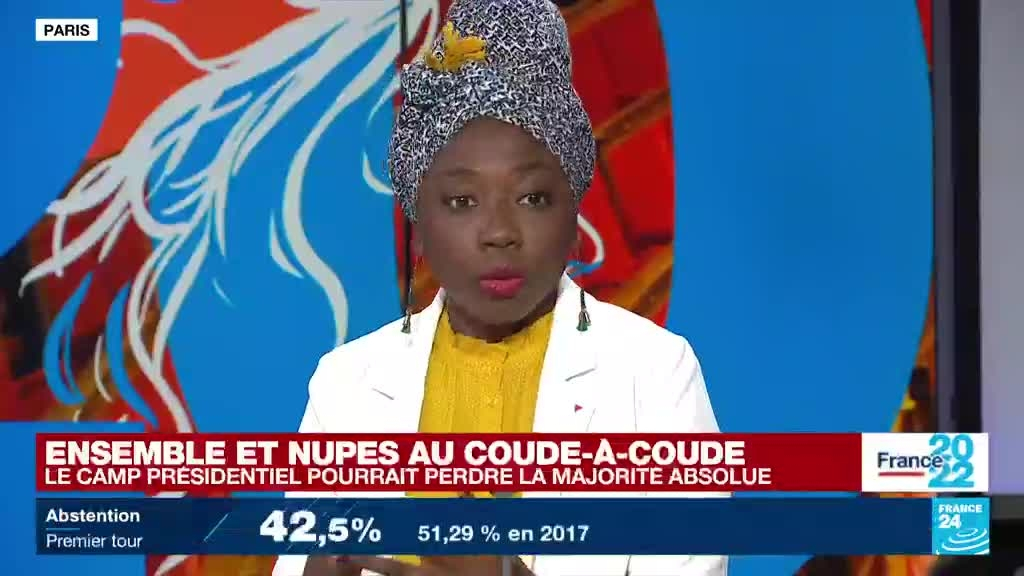 Législatives : Ensemble! obtiendrait le plus de sièges, incertitude sur la majorité absolue information fournie par France 24 12/06/2022 à 20:39