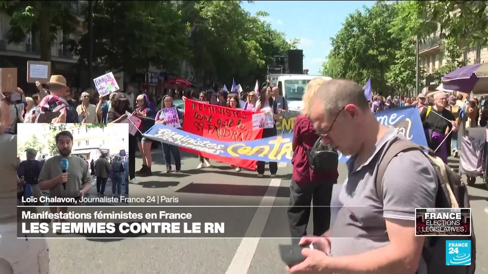 De nouvelles manifestations contre l'extrême droite sont prévues dimanche 23 juin dans plusieurs villes de France. Une mobilisation à l'appel, notamment, de plusieurs collectifs de défense des droits des femmes. À Paris, un cortège est parti de la Place de la République et se dirige vers la Place de la Nation. Journaliste à France 24, Loïc Chalavon, suit le cortège parisien.