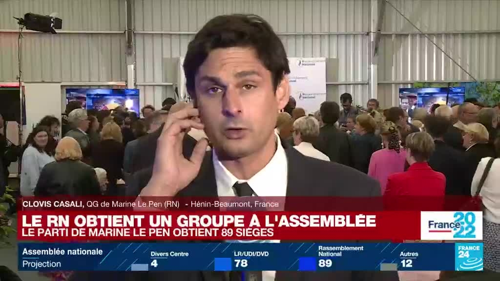 Législatives : poussée historique du RN, le parti obtient 89 sièges information fournie par France 24 19/06/2022 à 20:18