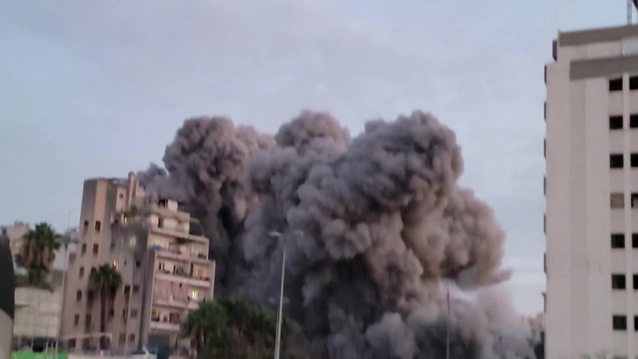 Un immeuble s'effondre dans le centre de Beyrouth à la suite d'une frappe israélienne, après que l'armée israélienne a appelé les habitants du quartier central de la ville à évacuer les lieux.