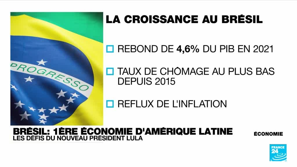 Le Brésil, première économie d'Amérique Latine, bénéficie de richesses naturelles et d'un secteur agroalimentaire dynamique. Son PIB a connu une forte croissance en 2021 et le taux de chômage a baissé. Mais la croissance ralentit, l'inflation reste forte et la pauvreté demeure très importante. Lors de ses deux premiers mandats, Lula avait enclenché de vastes programmes sociaux. Parmi les défis qui l'attendent : convaincre les milieux d'affaires, qui sont davantage pro-Bolsonaro.