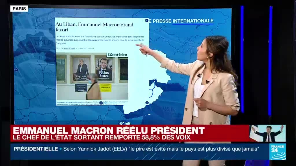 Macron réélu président : les réactions dans la presse nationale et internationale information fournie par France 24 25/04/2022 à 00:34