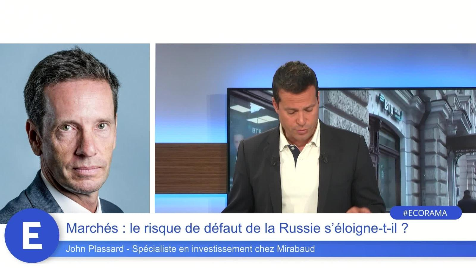 Le défaut de la Russie semble momentanément s'éloigner puisque la banque JP Morgan dit avoir reçu les fonds destinés au paiement des intérêts dus sur les obligations souveraines russes. L'analyse de John Plassard, spécialiste en investissement chez Mirabaud. Ecorama du 18 mars 2022, présenté par David Jacquot sur Boursorama.com