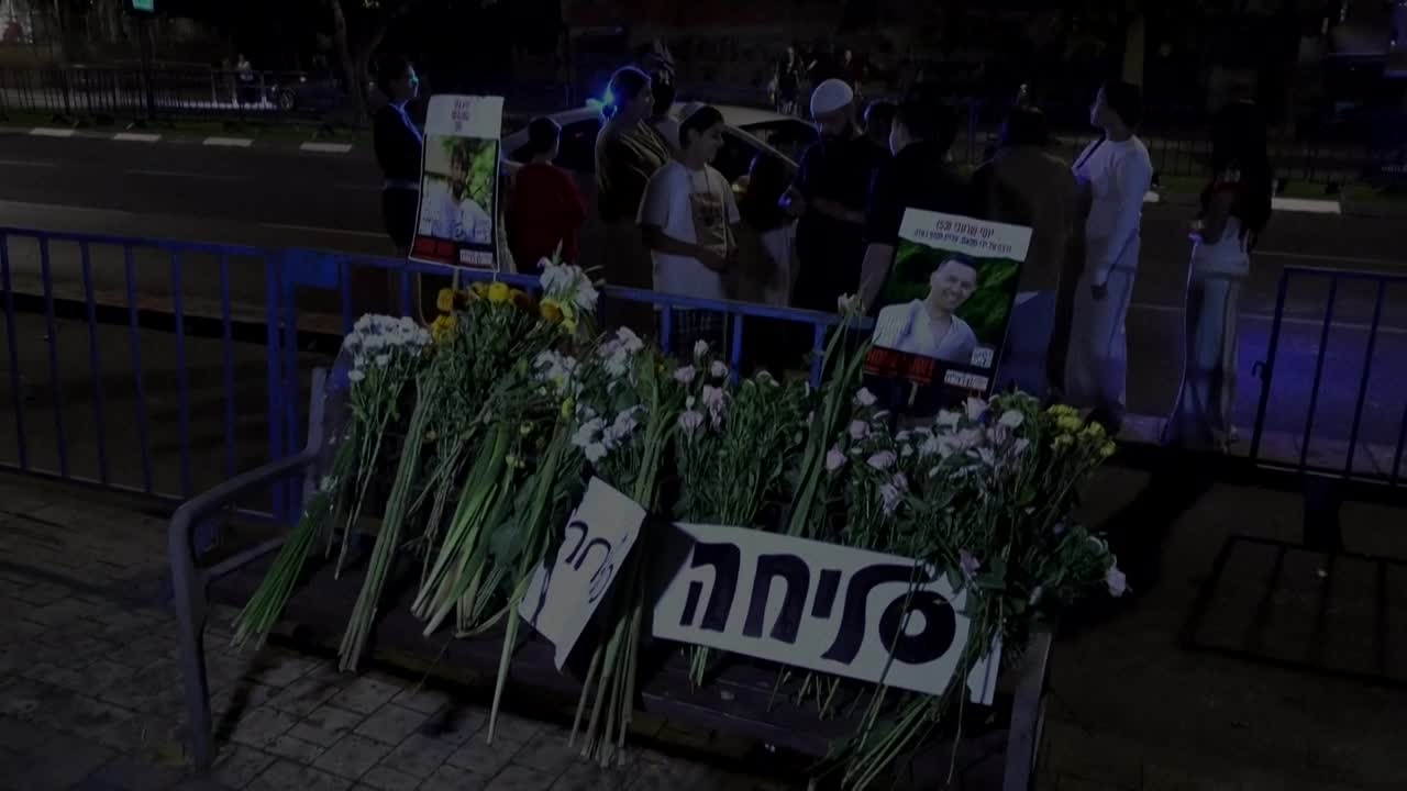 Mémorial devant le centre médico-légal de Tel-Aviv après l'arrivée de quatre corps d'otages information fournie par AFP Video 14/10/2025 à 07:32