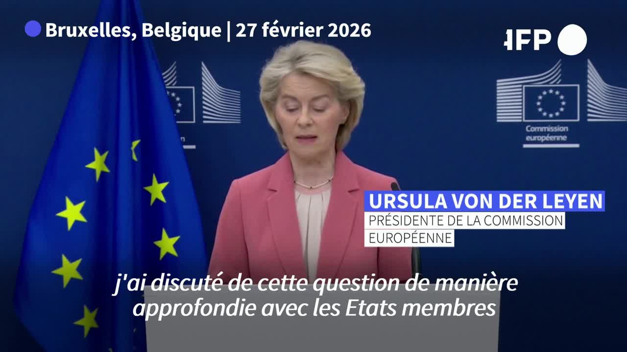 Mercosur: l'UE va appliquer l'accord de façon provisoire, annonce von der Leyen information fournie par AFP Video 27/02/2026 à 13:55