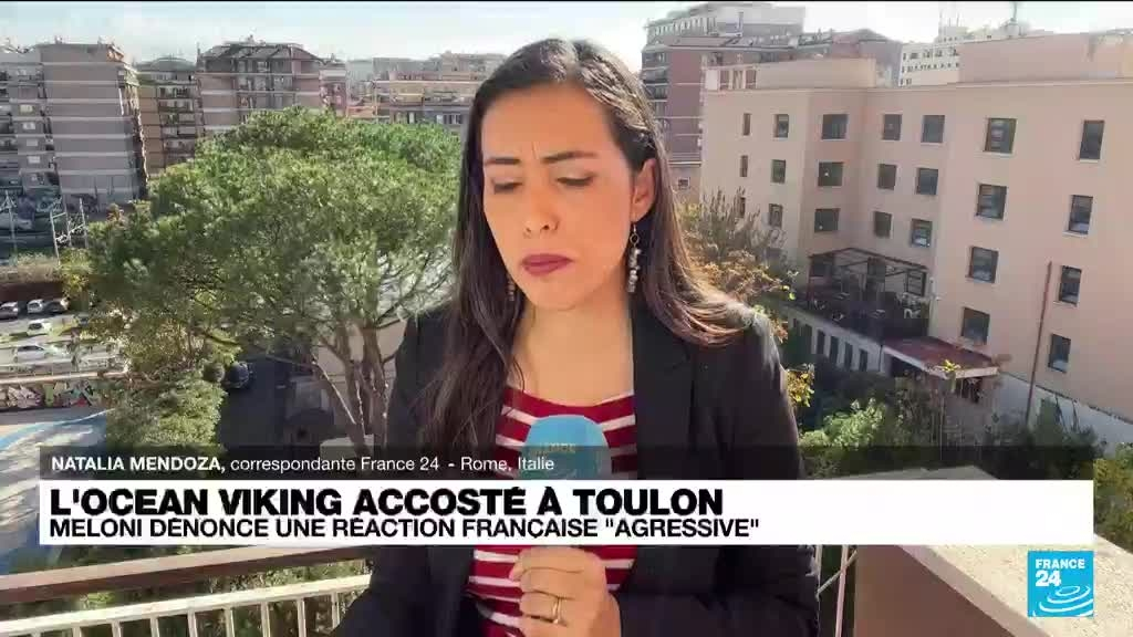 La présidente du Conseil italien Giorgia Meloni a déploré vendredi la "réaction agressive" du gouvernement français au sujet de l'accueil du navire humanitaire Ocean Viking, parlant d'un "malentendu". Les précisions de Natalia Mendoza, correspondante France 24 à Rome.