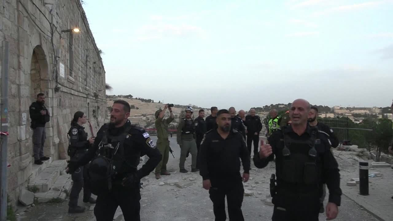 Images des forces de sécurité sur les lieux de l'impact de débris de missile ou d'intercepteur dans la Vieille Ville de Jérusalem, après une alerte aux missiles iraniens. IMAGES