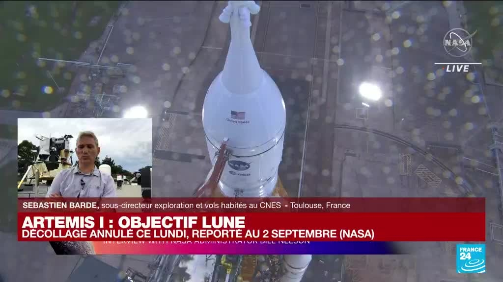 Le décollage de la nouvelle fusée de la Nasa pour la Lune, la plus puissante du monde, a été annulé lundi 29 août en raison d'un problème technique, une déception pour l'agence spatiale américaine, qui devra désormais viser les prochaines dates de repli. Sébastien Barde, sous-directeur exploration et vols habités au CNES à Toulouse, était l'invité de France 24 pour évoquer ce report mais également l'objectif de la mission.