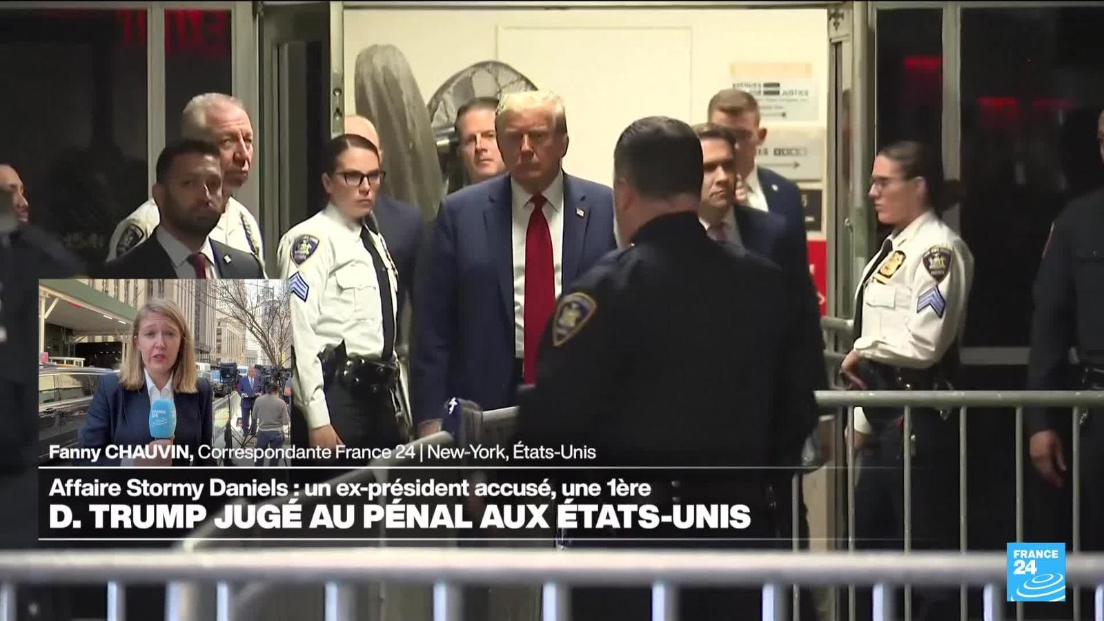 Donald Trump a dénoncé lundi 15 avril une "attaque contre l'Amérique" en arrivant à son procès pénal à New York pour paiements dissimulés à une ancienne star de films pornographiques juste avant la présidentielle de 2016. Donald Trump est devenu, le premier ex-président des États-Unis à faire face à la justice pénale avec l'ouverture d'un procès. Les précisions de Fanny Chauvin.