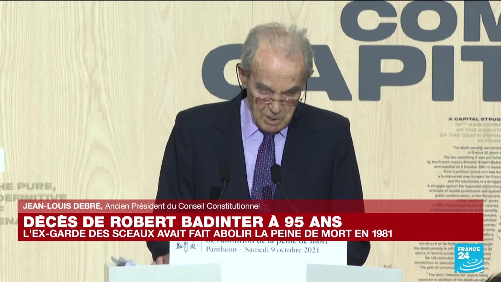 Emmanuel Macron a une nouvelle fois salué la mémoire de Robert Badinter après l'annonce de la mort de l'ancien garde des Sceaux, vendredi 9 février, à 95 ans. Un hommage national lui sera rendu, a annoncé le président de la République. Robert Badinter a marqué la Vème République notamment pour son combat contre la peine de mort, comme l'explique Jean-Louis Debré, ancien Président du Conseil Constitutionnel, invité de France 24.