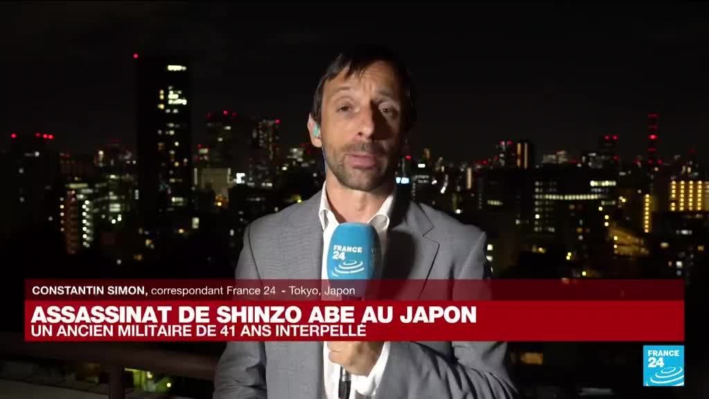 L'ancien Premier ministre japonais Shinzo Abe a été tué par balles en pleine rue lors d'un meeting à l'approche des élections sénatoriales, vendredi 8 juillet. Un suspect d'une quarantaine d'années a été désarmé et arrêté. Selon plusieurs médias locaux, l'homme serait un Japonais de 41 ans ayant par le passé appartenu à la Force maritime d'autodéfense japonaise, la marine nippone. Les dernières précisions de Constantin Simon, correspondant de France 24 au Tokyo.