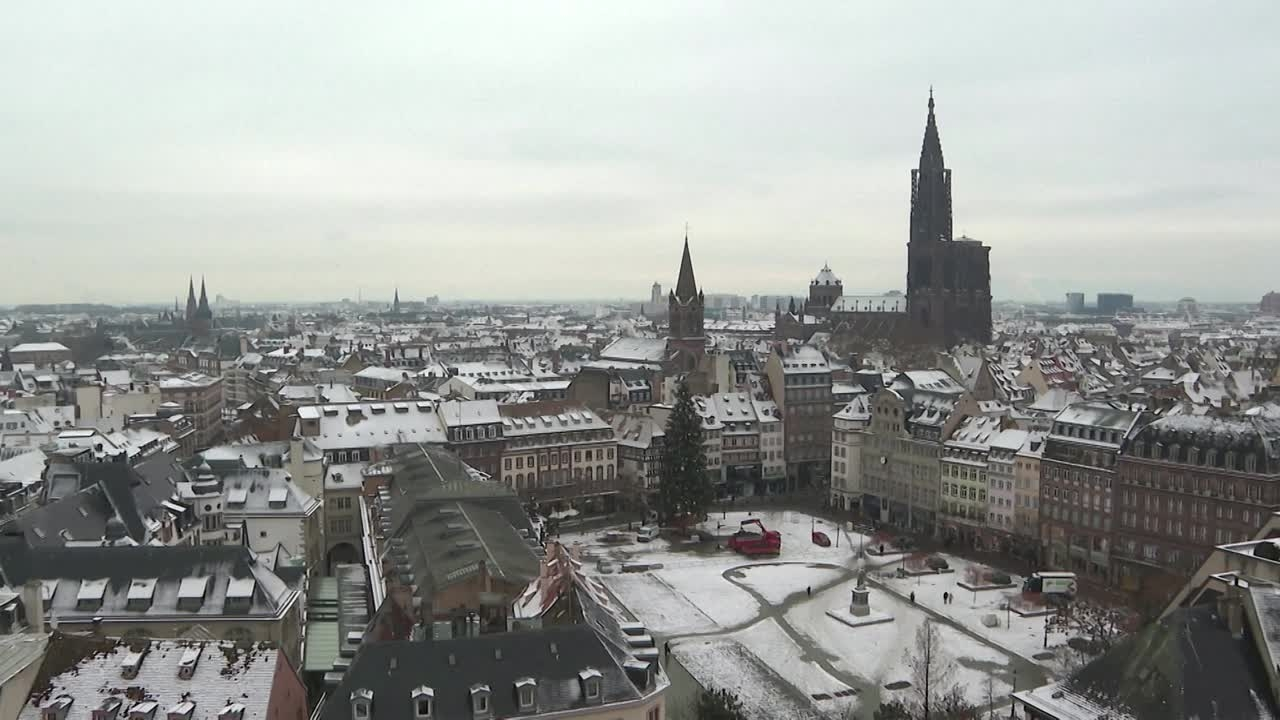 La ville de Strasbourg est recouverte d'une fine couche de neige ce matin, alors que Météo-France a levé la vigilance orange neige et verglas dans les 26 départements concernés.