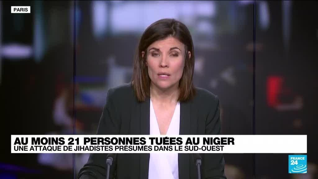 Au moins vingt-et-une personnes, dont deux policiers, ont été tuées mercredi dans une attaque de jihadistes présumés contre un bus et un camion dans la région de Tillabéri, dans le sud-ouest du Niger, près du Burkina Faso, ont rapporté jeudi à l'AFP des sources sécuritaire et locale. Les précisions d'Harold Girard, correspondant France 24 à Niamey.