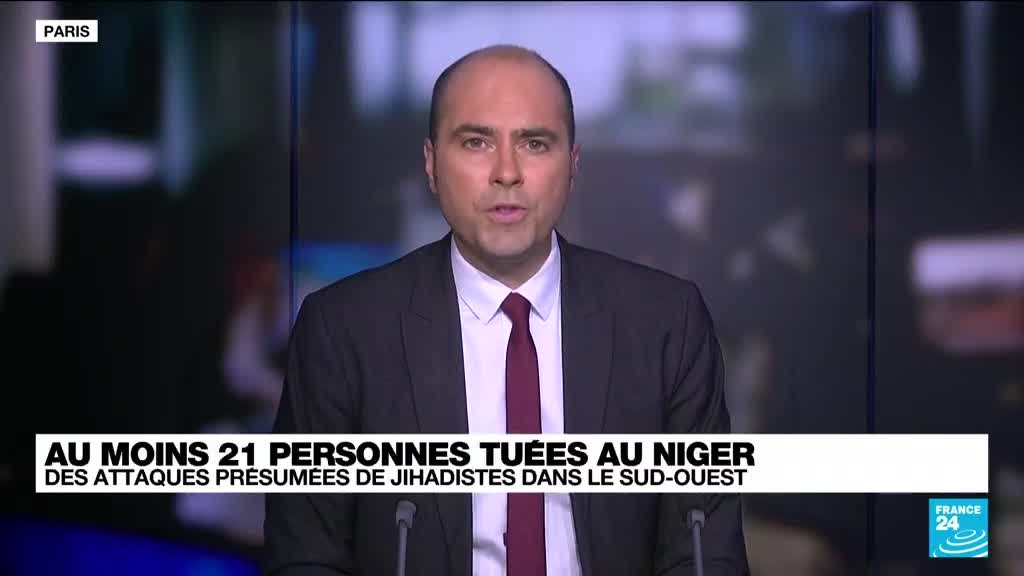 Au moins vingt-et-une personnes, dont deux policiers, ont été tuées mercredi dans une attaque de jihadistes présumés contre un bus et un camion dans la région de Tillabéri, dans le sud-ouest du Niger, près du Burkina Faso, ont rapporté jeudi à l'AFP des sources sécuritaire et locale. Les précisions d'Harold Girard, correspondant France 24 à Niamey.