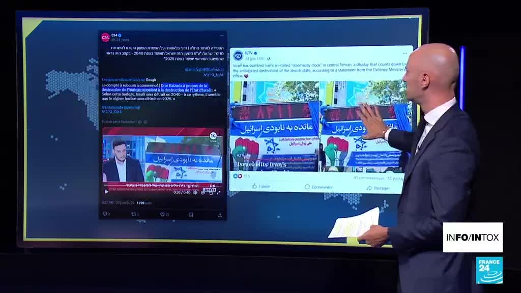 Non, l'horloge iranienne annonçant la "destruction d'Israël" à Téhéran n'a pas été détruite information fournie par France 24 26/06/2025 à 22:40