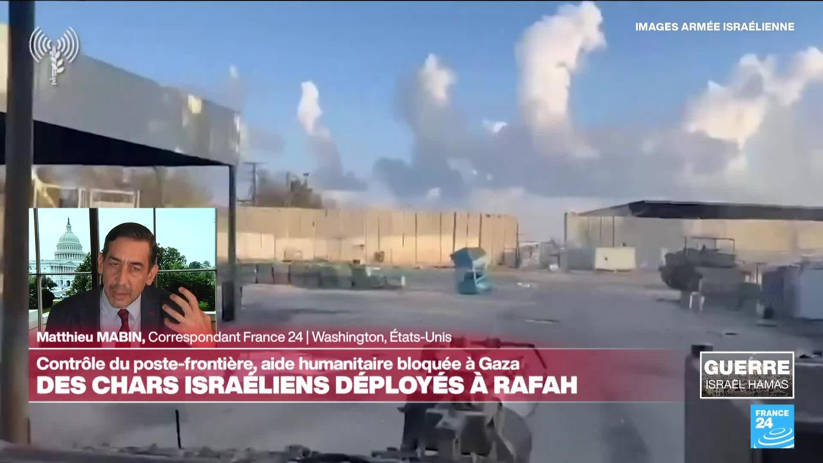 L'armée israélienne a déployé des chars mardi 7 mai dans Rafah et pris le contrôle du passage frontalier avec l'Egypte, dans le sud de la bande de Gaza. Les Israéliens tiennent à montrer que l'offensive n'est pas majeure et présentent cela comme une "opération antiterroriste". Faut-il voir la main du département d'Etat américain qui s'évertue à retenir les ardeurs israéliennes sur Rafah depuis des mois maintenant ? Eléments de réponse avec Matthieu Mabin, correspondant de France 24 aux Etats-Unis.
