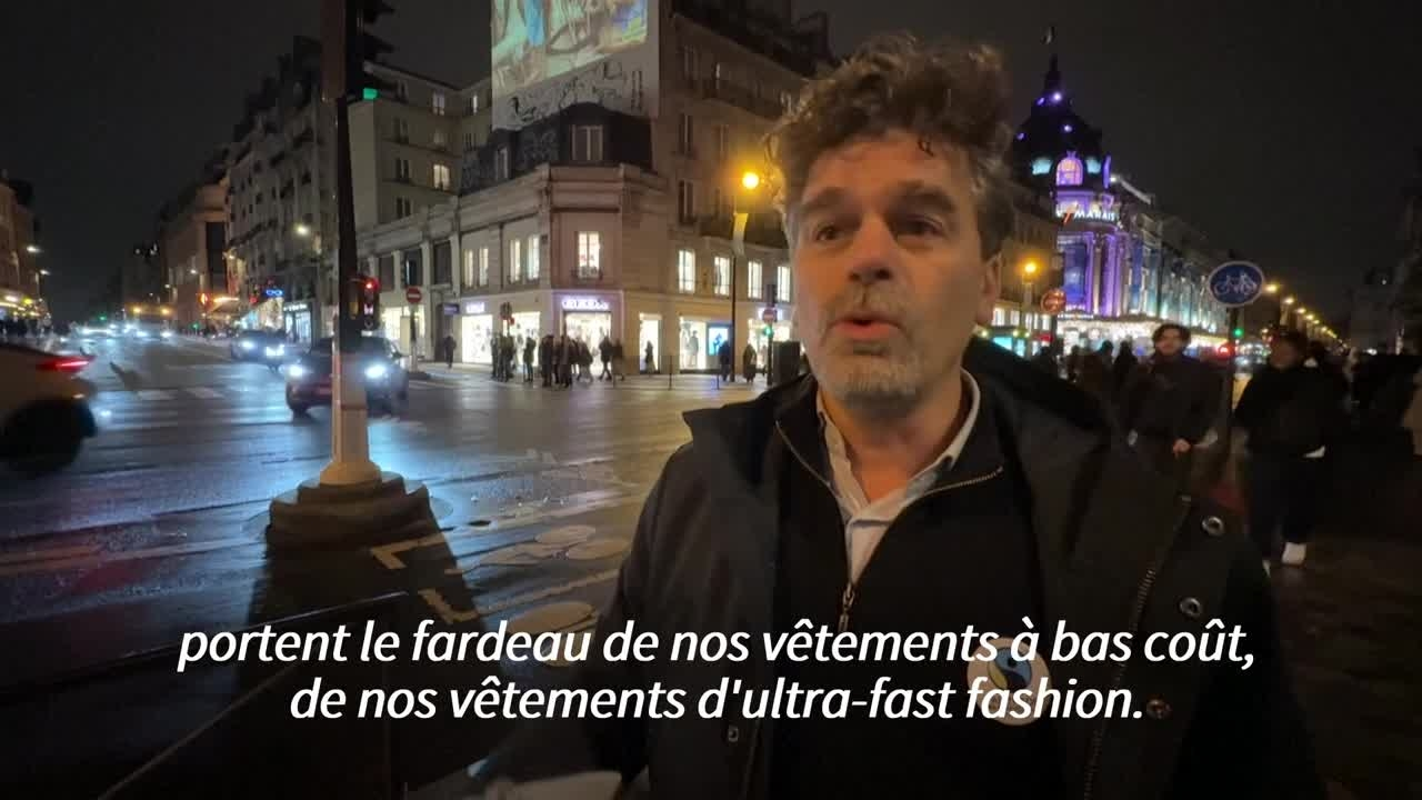 Un spot anti-Black Friday dénonçant les pratiques de l'industrie textile a été projeté jeudi sur une façade parisienne proche du BHV à la veille de la date officielle de l'opération commerciale.