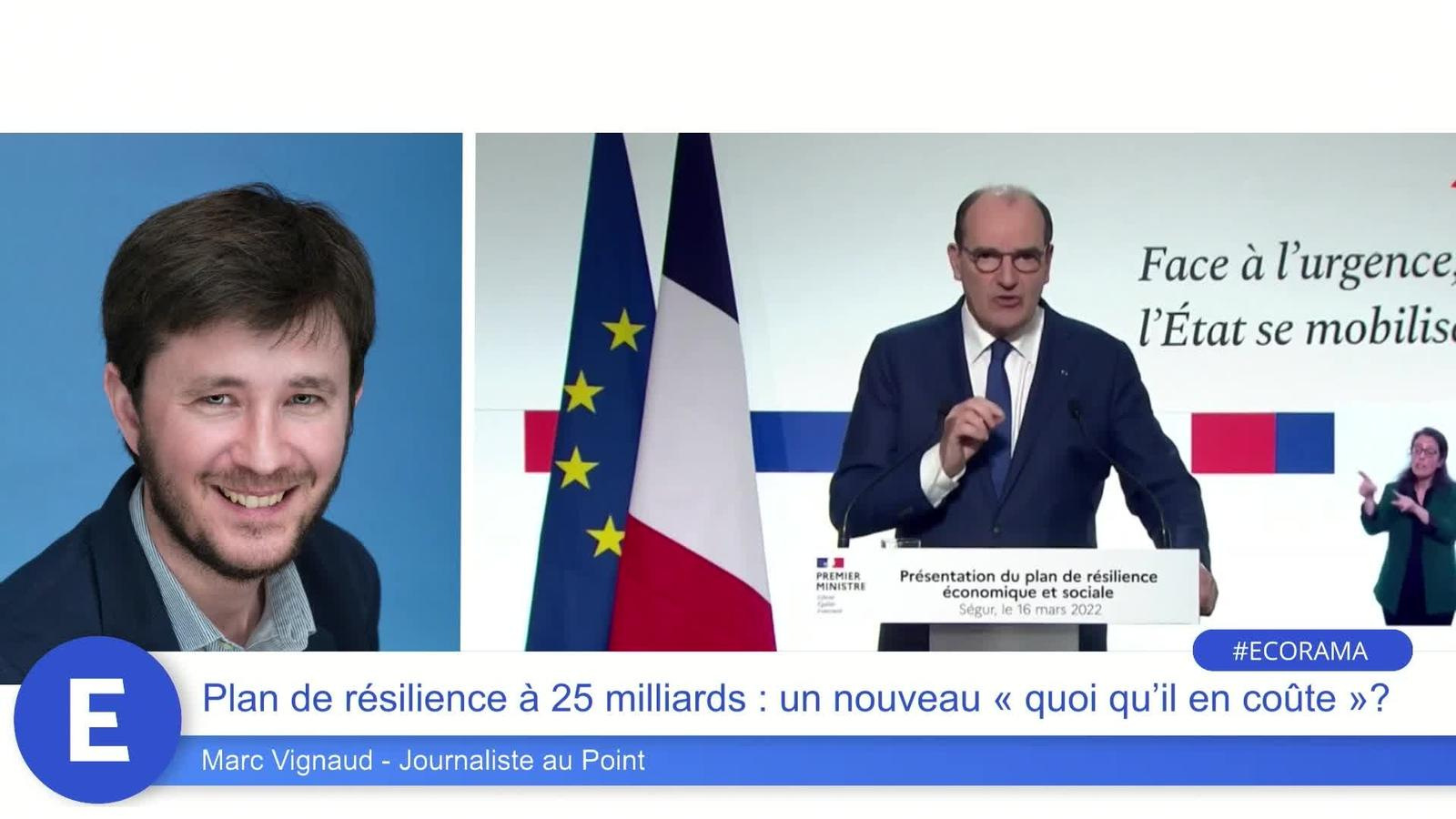 Jean Castex a présenté ce mercredi le plan de 25 milliards d'euros du gouvernement pour faire face aux conséquences de la guerre en Ukraine. Une facture trop salée ? Les explications de Marc Vignaud, journaliste au Point. Ecorama du 17 mars 2022, présenté par David Jacquot sur Boursorama.com
