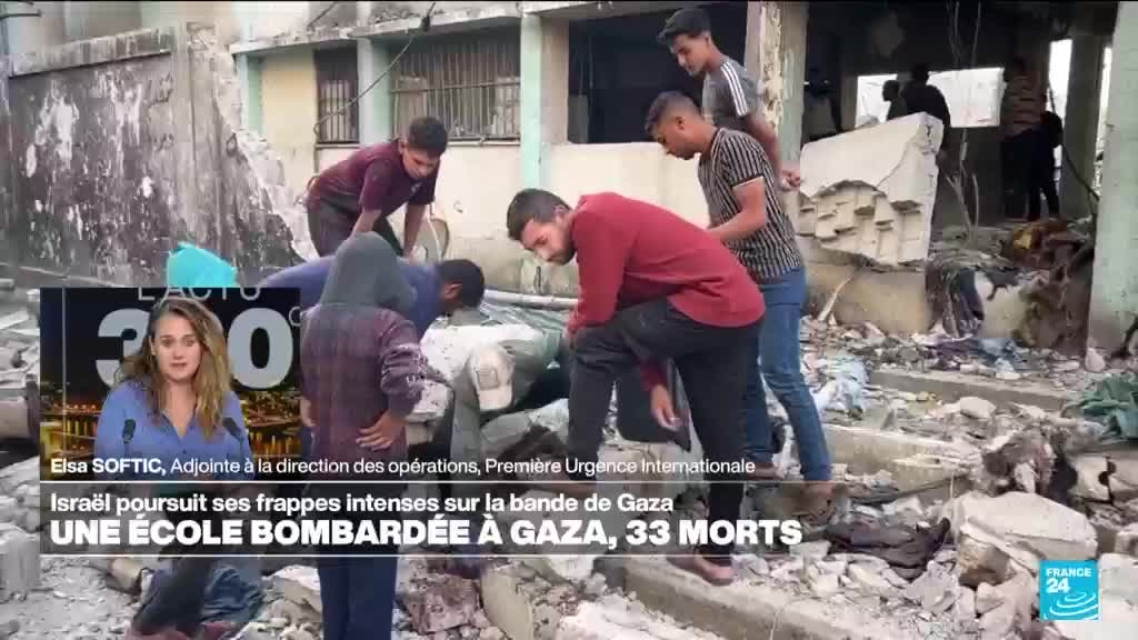 Au moins 52 personnes ont été tuées lundi par des bombardements israéliens à Gaza, selon la Défense civile palestinienne, dont 33 dans une école abritant des déplacés, où l'armée israélienne a dit avoir visé des "terroristes de premier plan". Ces nouvelles frappes meurtrières interviennent alors qu'Israël intensifie son offensive dans le territoire palestinien dévasté et affamé, malgré les pressions internationales croissantes pour faire taire les armes. Décryptage avec Elsa Softic, Adjointe au Directeur des Opérations à Première Urgence Internationale.